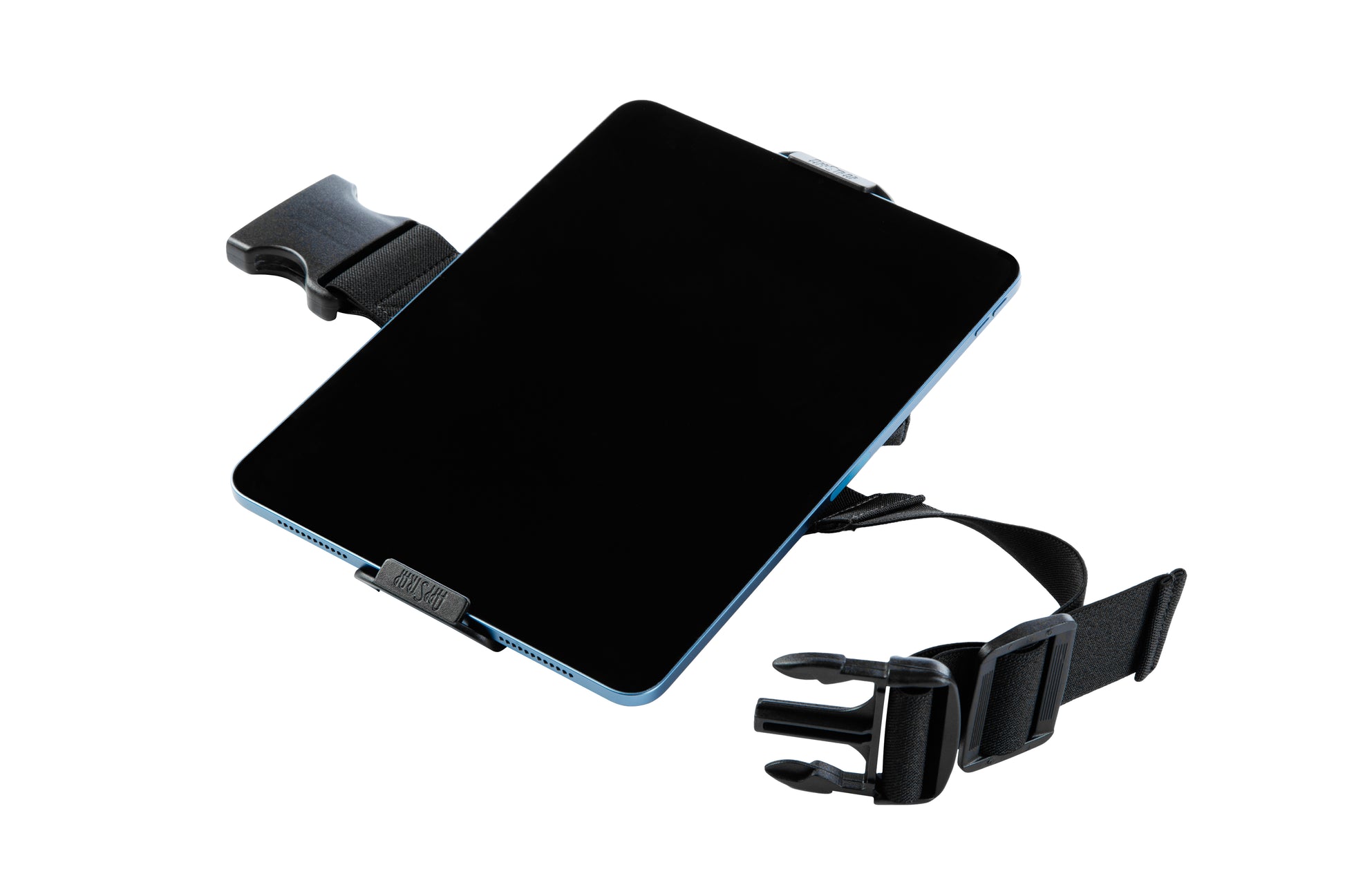 The AppStrap 6 fits heavy-duty and military cases like the OtterBox, Survivor, and Gumdrop, or cases .7 inches (or less) thick. The AS-6 uses two form-fitting black polycarbonate clips and comes with an adjustable leg strap with pen holder, and 2 Tilt Pads for angled-up viewing, device cooling, and enhanced stability. The AS-6 has a clip strap that is designed to fit securely across cases/devices that are approximately 10-11 inches tall, such as the iPad Pro 11-inch and 12.9 inch displays.